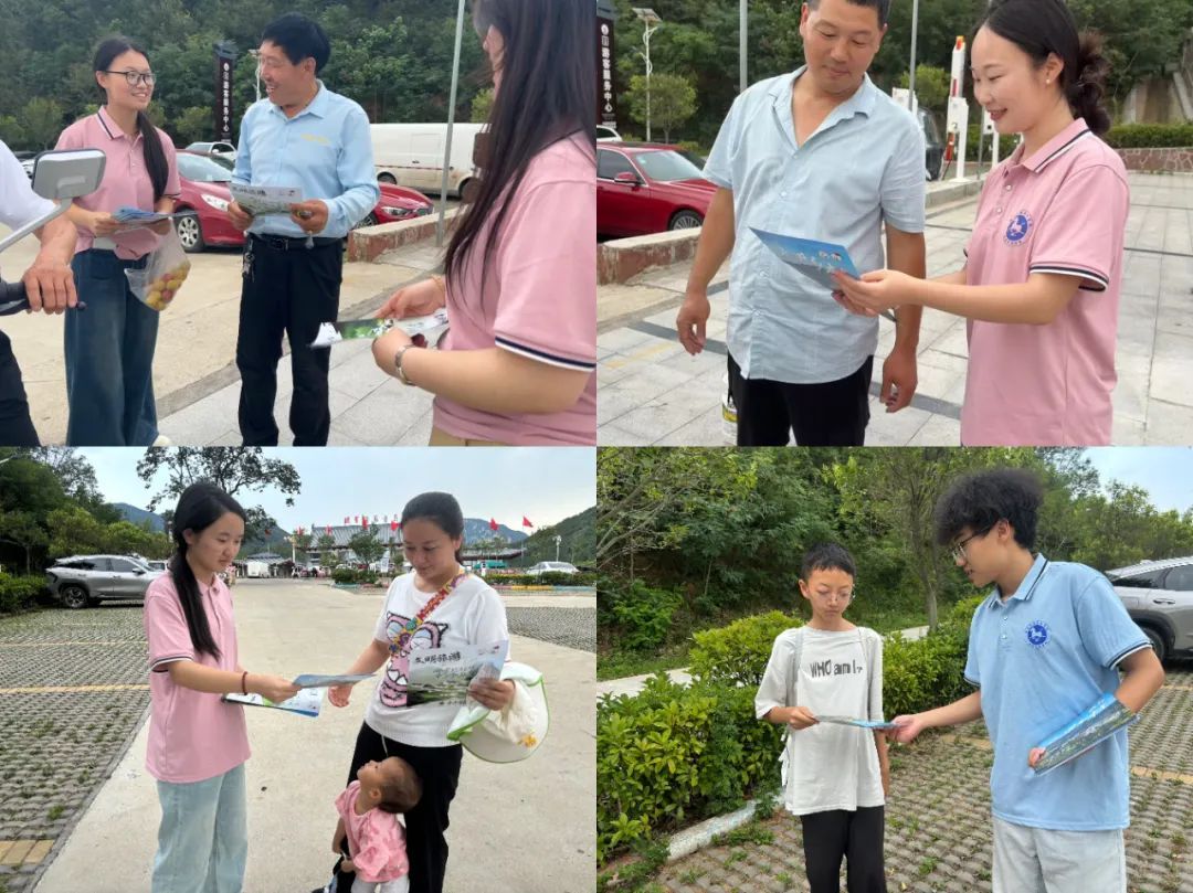活动中,志愿者们精神饱满,分组行动。他们手持精心设计的问卷,热情邀请游客参与调研,耐心询问其对景区服务设施、旅游体验、文化感知等方面的意见与建议,为景区优化升级采集第一手数据。同时,另一组志愿者积极向游客发放文明旅游宣传资料,耐心讲解保护生态环境、遵守景区秩序、爱护文物古迹的重要性,引导游客树立文明、健康、绿色的旅游观念,以实际行动传递“旅院温度”,展现旅管学子的专业素养与青春风采。
