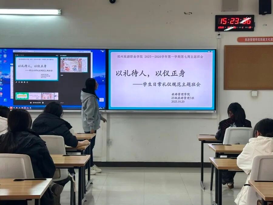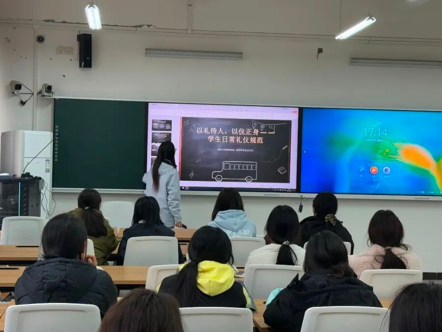 本次主题教育活动紧扣“以礼待人,以仪正身”核心,聚焦新生入学后亟需掌握的礼仪规范与行为准则,由各班班主任担任主讲人,为新生带来生动且实用的“礼仪第一课”。课堂上,班主任们首先系统解读大学生文明礼仪的核心内涵,围绕新生日常高频场景,从仪容仪表、日常行为准则、课堂文明三个维度作出具体要求,引导新生将文明礼仪“牢记于心、外化于行”,自觉融入大学学习生活,争当校园文明的践行者。