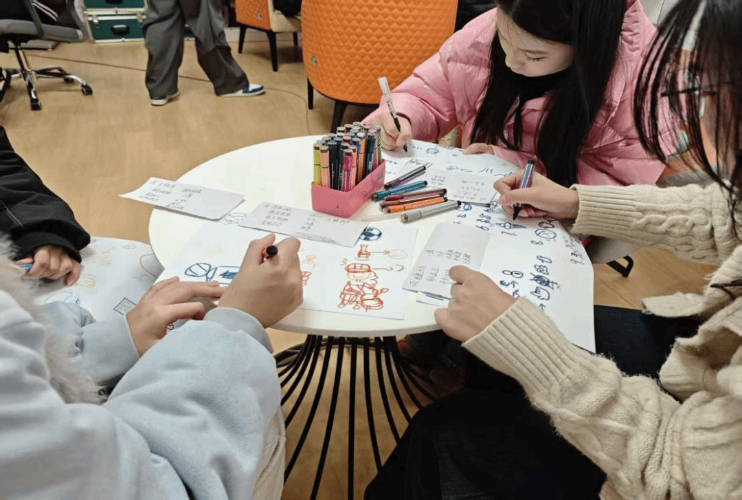 活动现场氛围轻松温馨,“你画我猜”环节率先拉开序幕。同学们随机组队,画手以“微笑”“并肩前行”“解压时刻”等心理相关词汇为主题创作,简单线条里藏着巧思,猜词者的默契抢答与趣味误解,让现场笑声不断,陌生感在互动中悄然化解,心理压力也随之释放。