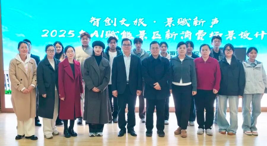 为深入贯彻落实国家关于促进“人工智能+消费”融合发展的战略部署,响应河南省打造“AI+智慧文旅”沉浸式体验新空间的号召,推动职业教育教学改革创新,深度挖掘培养旅游行业创新型人才,切实提升学生专业技能,旅游管理学院依托深度校企合作模式,于2025年11月26日在5A云景点举办了AI赋能景区新消费场景设计大赛决赛。旅游管理学院院长黄安定、党总支书记陈海彬、党总支副书记张楗让出席了本次大赛。大赛评委由河南建业文旅营销中心品牌部总监程方圆、河南省城乡规划设计研究总院规划建设分院总工程师、注册规划师席岩以及学院教师昝惠芳、柴蓓、吴萍担任。