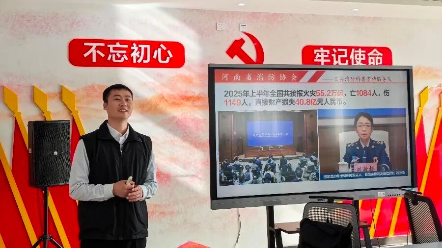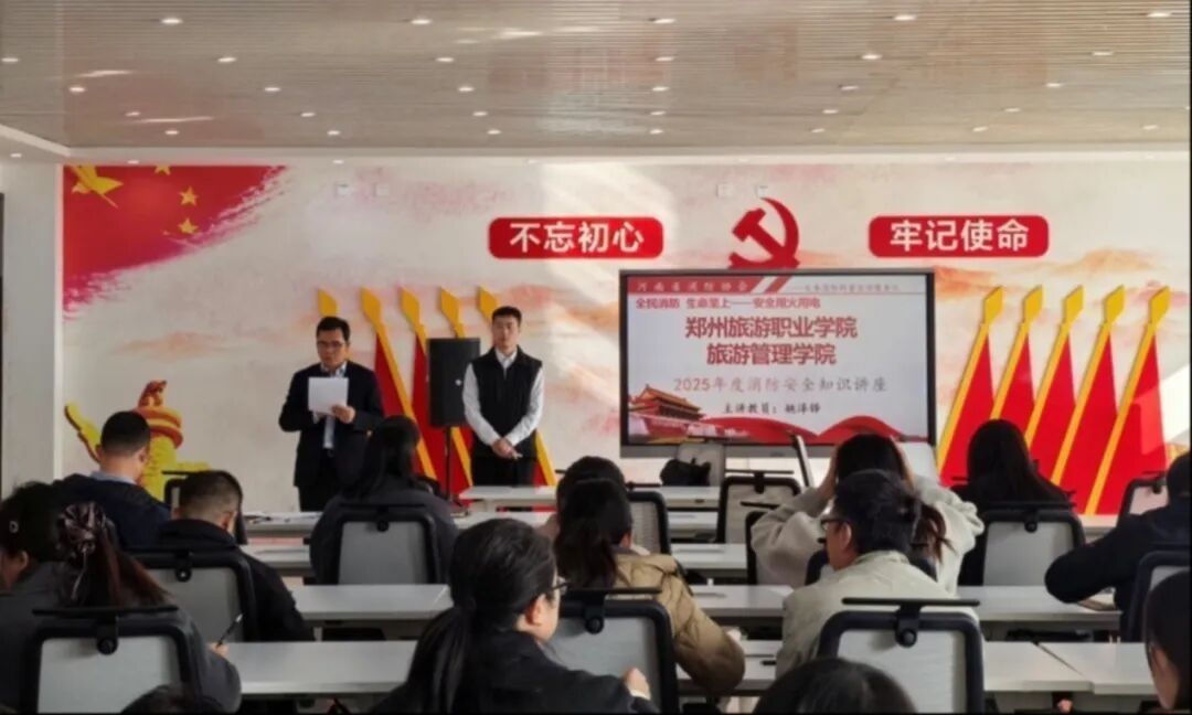 为深入学习贯彻习近平总书记关于安全生产的重要论述,紧扣“全民消防、生命至上-安全用火用电”消防月主题,切实提升我院教工的消防安全意识与应急处置能力,2025年11月26日,我院举办了专项消防安全知识培训,此次培训特邀河南省消防协会义务消防科普宣传服务队姚泽铎教员担任主讲嘉宾。学院党总支书记陈海彬、院长黄安定、副书记张楗让及全院教职工参与此次培训。