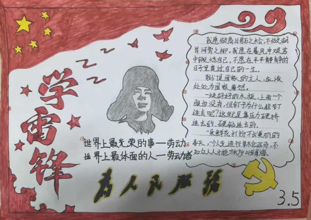 为深入学习贯彻习近平总书记关于弘扬雷锋精神的重要指示精神,传承“奉献、友爱、互助、进步”的志愿精神,厚植青年学子责任担当,丰富校园文化生活,3月10日起我院开展“传承雷锋精神,争做时代新人”主题手抄报征集活动。