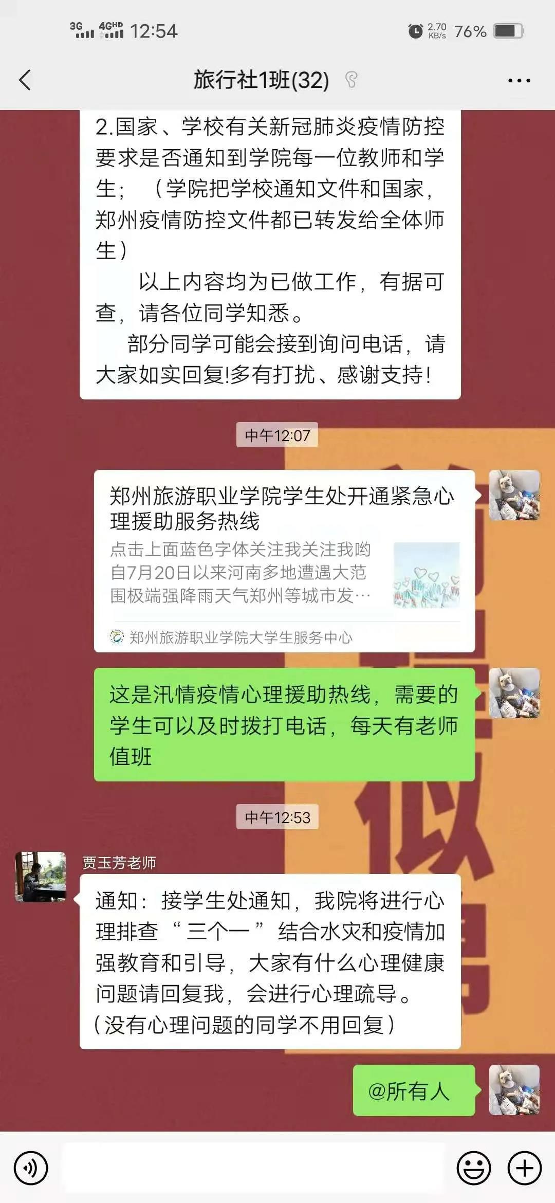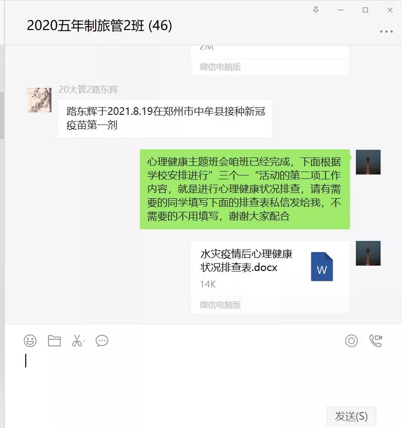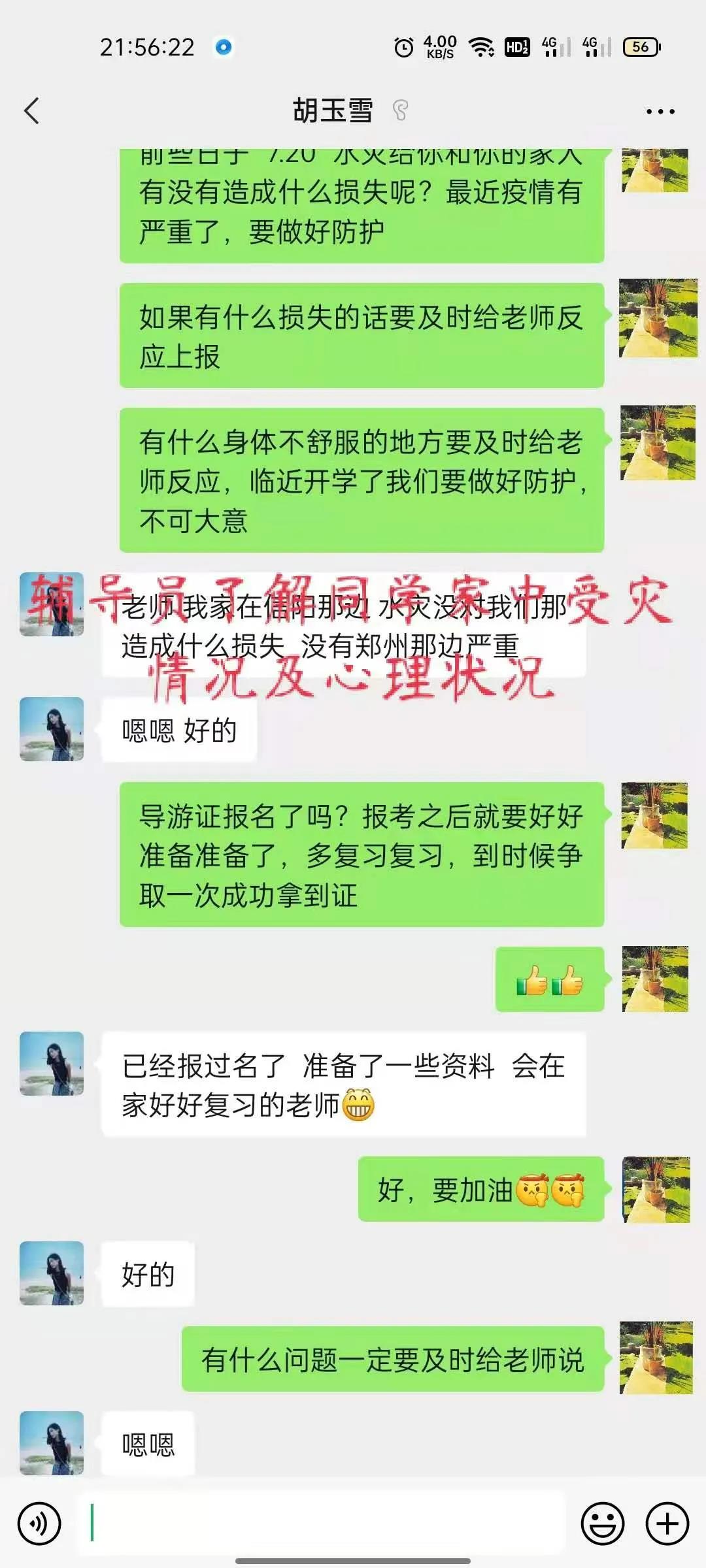 此次心理排查以班级为单位,由各班班主任老师负责,通过召开班会、发布问卷、召开线上班委会议、宿舍摸排等途径,坚决不漏掉每一个学生,全面细致地开展工作。排查的重点对象主要包括因洪涝灾害家庭受损的学生和处于疫情中高风险地区的学生;排查内容主要围绕学生近期的心理状况,是否因汛情和疫情的影响而产生害怕、焦虑、无助、恐惧、愤怒等负面情绪和心理体验。通过排查筛选出需要重点关注的学生,班主任备案记录在册,展开了有针对性地心理疏导和帮扶,帮助学生疏导负面情绪,给予精神支持。此外,对于因洪涝灾害家庭受损严重的学生,班主任、辅导员老师积极帮助学生提交资助补贴申请,努力帮学生减轻心理负担和精神压力。