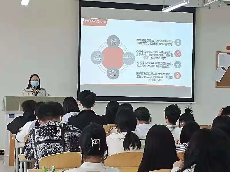 此次培训主要从“培训的目的”、“心理委员的工作职责和要求”、“心理委员注意事项”等几个方面展开。首先,舒展介绍了培训的目的,主要是让学生心理骨干掌握心理健康基础知识,深入了解大学生常见心理问题的表现和应对措施,明确自身的角色定位和工作职责。随后,舒展重点阐述了心理委员的工作职责和要求,其中,工作职责主要包括宣传普及心理健康知识、组织开展心理健康教育活动、为同学们提供心理帮扶、观察并及时报告学生异常心理问题等。关于工作要求,舒展重点强调心理委员要具备较强的沟通能力和组织协调能力,还要有敏锐的洞察力。舒展还结合图文和音频资料分享了各类经典案例,强化大家对心理工作和心理健康的认识。