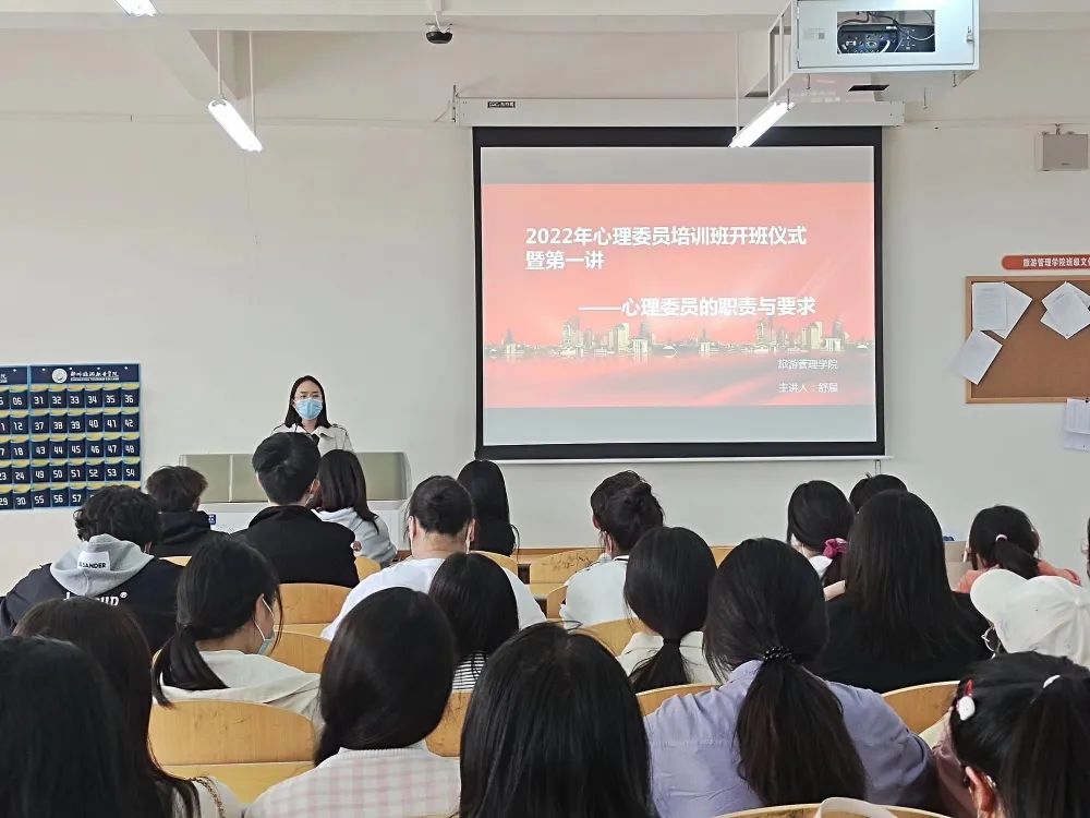 为强化学生对心理健康的重视,提高心理委员的专业能力和工作水平,促进学生健康快乐成长,全面提升学院的心理健康教育工作。4月6日下午,旅游管理学院于5A502教室开展了2022年心理委员培训班开班仪式暨第一讲——心理委员的职责与要求。本次培训的主讲人是学院心理工作负责老师舒展。学生会心教部全体成员、各班心理委员和宿舍长参加了此次培训。