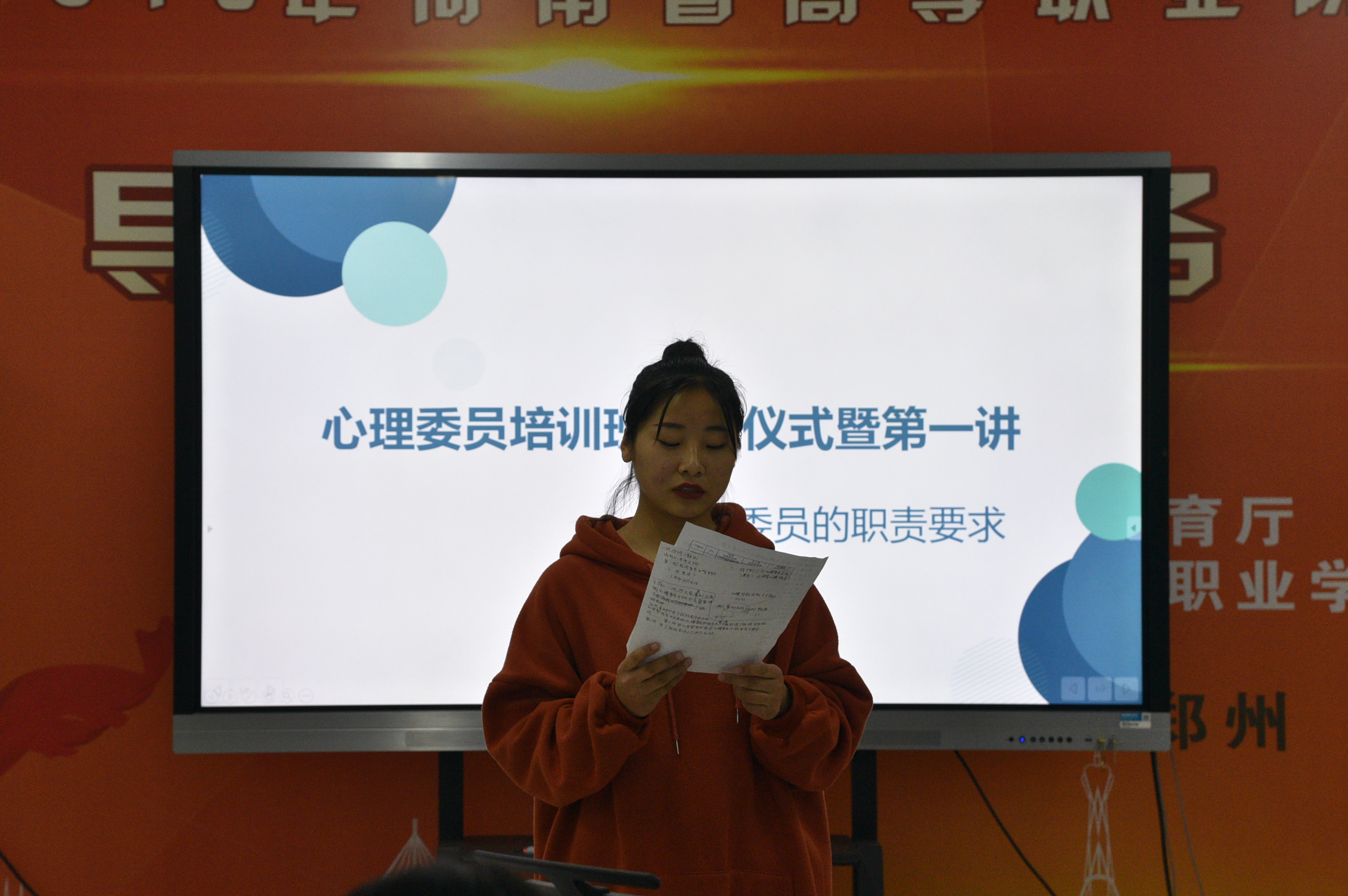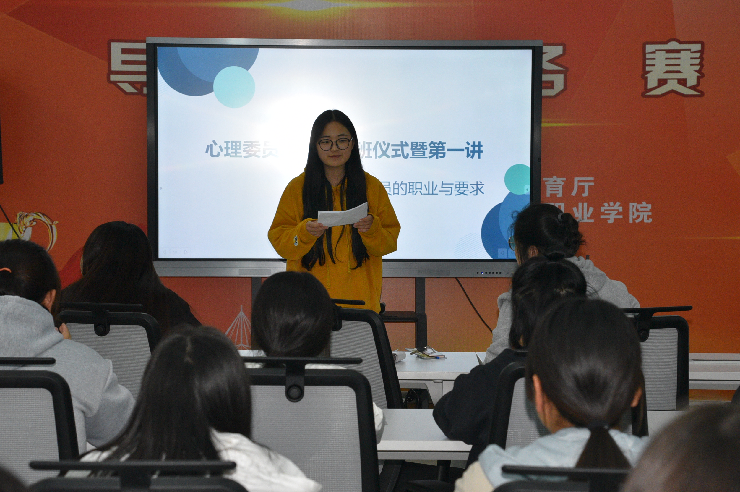 接着,我院学生会心安部部长谢晓婉为我们宣读了关于对心理委员要求的规章制度,希望大家以身作则,做好本职工作。