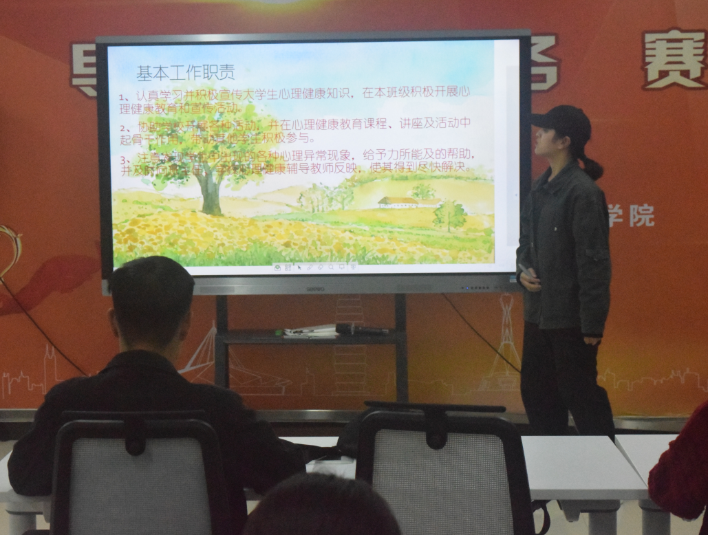 首先,由18高旅一班张艳琼、18高旅八班闫晨阳、18文案班王佳慧分别讲述自己对于心理委员这个职位的认知及两年来的收获与总结。她们表示,班级心理委员是学院心理工作的前线人员,我们要明确职责,肩负起相应的责任。在日常生活中,我们要通过观察和相处,及时了解同学们心理健康的基本情况,要对有需求的同学提供及时帮助,必要时上报院系,更要做好每位学生心理健康档案建设,使心理工作成为常态。作为心理委员,并不仅仅拥有着一个班委的头衔,更是担负着一种责任和义务,一个光荣的使命。而要做好这项工作,首先要拥有良好的心态,拥有心理疏导及调节的能力,才能更好的帮助其他同学;在平时学习、生活中起到良好师生间的“桥梁”作用,有问题及时上报处理,维护校园安全稳定。