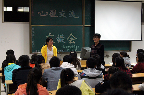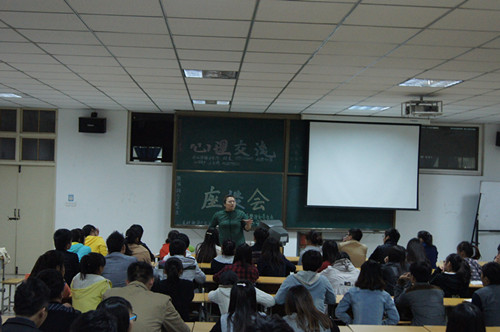 为了响应学校关于加强大学生心理健康教育的号召,培养以及提高大学生的良好心理素质,旅游管理系学生会心安部特于2013年10月17日晚19:30在我院西教学楼301教室开展了心理交流座谈会。