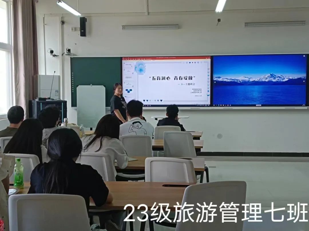 为积极响应学校关于全面培养学生心理健康教育的要求。5月29日,郑州旅院旅游管理学院召开“五育润心,青春绽放”主题班会,班会由各班班主任主持。