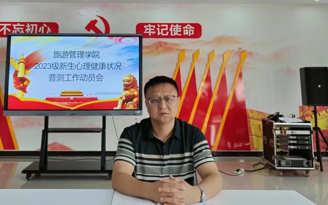为更好了解、评估2023级新生心理健康状况,把握新生心理状况,提高旅游管理学院心理健康教育工作的针对性和实效性,促进2023级新生的身心健康发展。9月18日10时,旅游管理学院在5号楼党建馆召开2023级新生心理健康状况普测工作动员会。旅游管理学院党总支书记秦合岗,党总支副书记张楗让,以及全体专兼职辅导员参加会议,会议由张楗让主持。