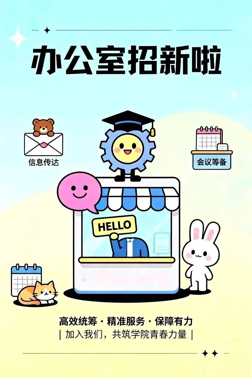 是学院日常运转的“中枢神经”与服务师生的“前沿窗口”,环绕“高效统筹、精准服务、保障有力”的工作定位,承担学院日常信息传达、各类会议的筹备、师生事务服务等核心职能,为学院各项工作有序推进与高质量发展提供坚实保障。