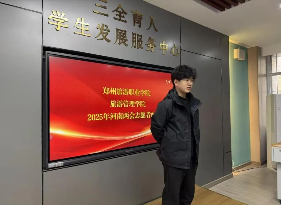 为高质量服务2025年河南两会,旅游管理学院高度重视本次志愿服务活动,于12月19日在5B102大学生服务中心开展了志愿者面试选拔活动。旅游管理学院团总支代书记张卿颜,专职辅导员朱臣臣、王轩参与本次面试评选。