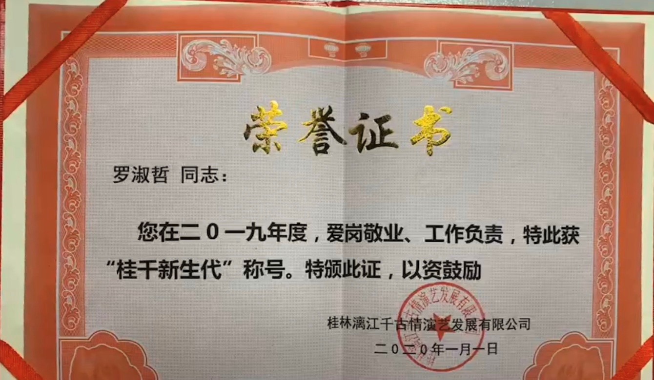 罗淑哲,17生态班,班主任王璐老师。罗淑哲同学在桂林漓江演艺发展有限公司接待部接待讲解员实习期间,工作认真、勤奋好学、踏实肯干、爱岗敬业;在工作期间,帮助游客找到丢失物品、丢失儿童,处理投诉、广播、游客摄影等工作内容;同时负责景区讲解、贵宾接待、安全急救培训等工作内容。其认真负责的工作态度,多次获得公司领导的认可和鼓励,体现出pp电子游戏平台网站较高的德育和智育水平和注重学生综合能力的提高和发展。该生在入职第四个月就担任了接待部接待组质检工作,并且荣获“优秀实习生”“桂千新生代”等荣誉称号。