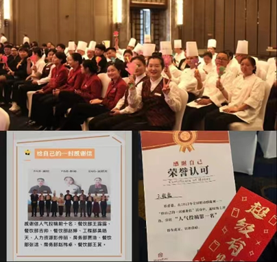 有一次有位客人的筷子掉地上了,客人还没有捡起来我已经把新的筷子拿到她面前了,她说你的服务真好!特别棒让我感受到了宾至如归的感觉而且非常的贴心!事情过后她专门写了五星好评!对我服务给予肯定。平时服务中客人写了很多表扬信和感谢信被我的服务态度和热情感染到。