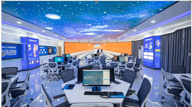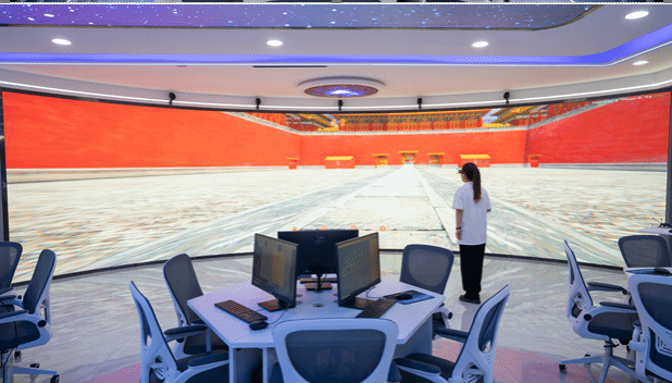 本实训室占地面积168平方米,入选河南省虚拟仿真实训基地,集“先进的教学设施+丰富的教学内容+完善的教学实验体系+优秀人才培养+资源共享示范中心”于一体,实现教学、实训、科研、交流共享等功能。实训室可以支持研学旅行管理与服务专业、导游专业、旅游管理专业等旅游类专业的《研学旅行概论》、《研学旅行课程设计》、《研学旅行指导师实务》、《模拟导游》等课程,学生可通过沉浸式体验不同类型的研学旅行实践基地,熟悉研学实践基地线路和资源特征,为完成研学旅行课程设计和实施提供依据。