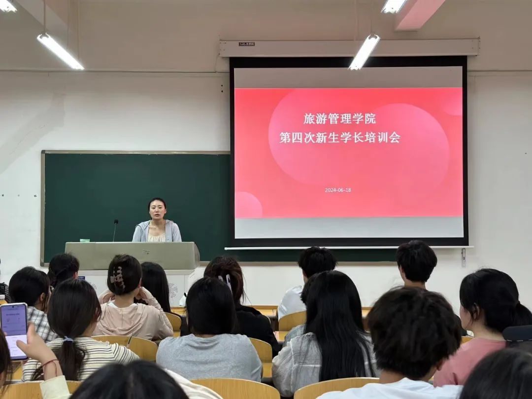 为增强新生学长对宿舍管理规定的深入理解,旅游管理学院于2024年6月18日下午在5A406教室开展第四次新生学长培训会。此次培训由旅游管理学院辅导员张卿颜主持开展。