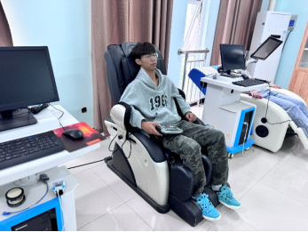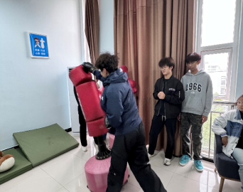 心理健康中心环境温馨舒适,充满人文关怀,心理辅导站老师和心安部为参观者们详细介绍了宣泄室、接待室等各个房间的用途和功能,让同学们体验了沙盘、按摩椅等服务设施,同学们认真聆听讲解,积极互动。