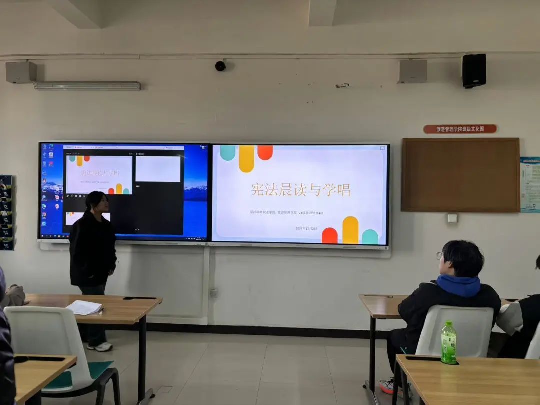 为深入贯彻党的二十大精神,全面落实习近平法治思想,推进宪法宣传教育常态化与长效化,我院于12月2日组织召开了“宪法晨读与学唱”主题班会,班会由各班班主任主持。