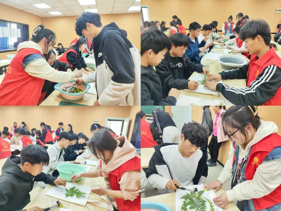 活动伊始,志愿者们以“植物拓印”为主题,为姚家中学的学生们带来一堂生动的非物质文化遗产课。志愿者详细介绍了植物拓印的历史渊源与文化价值。在生动的讲解中,孩子们了解到这一非遗技艺起源于秦汉时期,古人通过捶打植物将自然之美定格于织物之上,既是对自然的敬畏,也是生活智慧的结晶。学生们聚精会神聆听,眼神中充满对非物质文化遗产的好奇与向往。