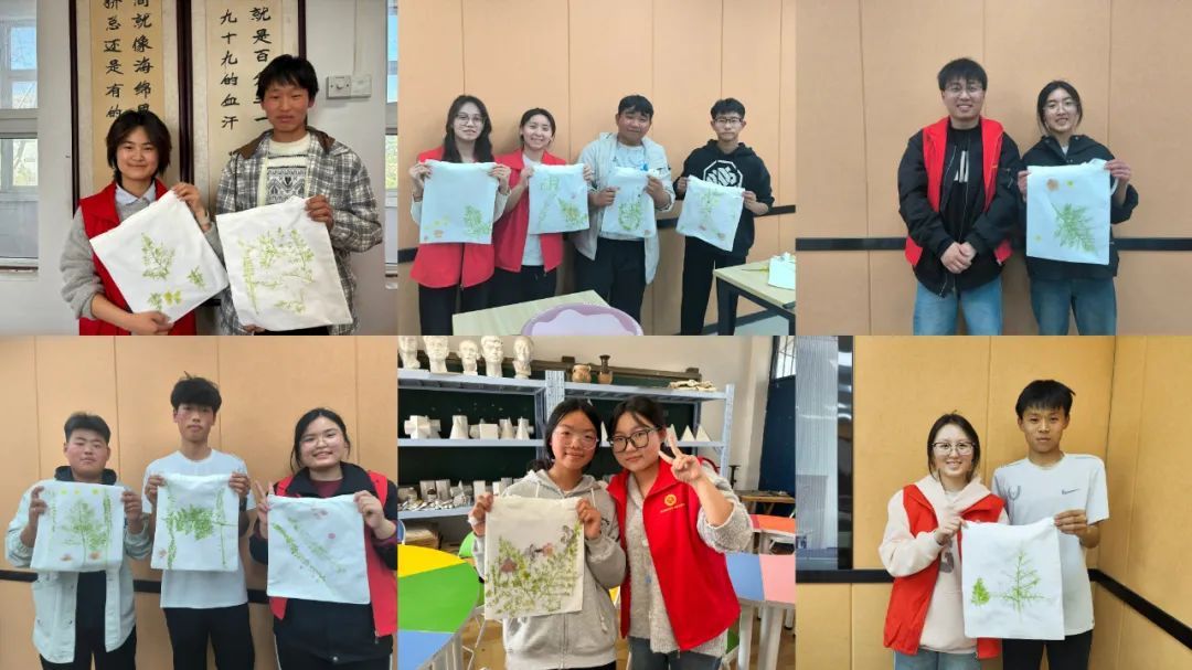随后,在志愿者的带领下,学生们走进校园,亲手采摘各色花草。春日阳光下,孩子们化身“自然采集员”精心挑选心仪的植物叶片与花瓣。回到教室后,志愿者们化身“非遗导师”,手把手指导学生将花草摆放在帆布包上,通过敲打、拓印,让植物的形态与色彩跃然布面。活动现场锤声清脆,欢声不断,一件件充满自然气息的拓印作品逐渐成型。看到自己的创意成果,学生们兴奋地举起帆布包展示,脸上洋溢着自豪的笑容。