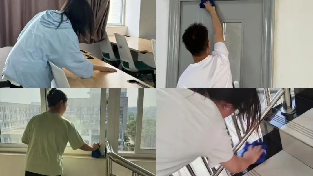 实践过程中,各小组按计划在责任区域开展劳动活动。对教学楼周边进行垃圾清扫,对门窗、公告栏等公共设施进行擦拭。学生们运用分区协作、工具优化等方法提升效率,同步落实劳动安全规范,完成校园公共区域以及教学楼的全面清洁整治。