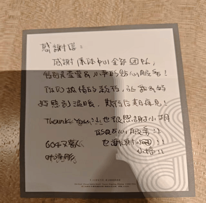 前台工作不仅涉及咨询与指引,更承担着康乐项目预约、登记、结算等具体事务。卢晓莹同学在工作中展现出高度的责任心和主动服务意识。尤为值得一提的是,在上月,她因出色的应急处理与人性化服务收到了一封来自香港游客的亲笔表扬信。信中提及,该游客携带老人游玩时,老人意外摔倒。卢晓莹同学第一时间协助联系医疗点寻求专业处理,同时贴心协调、调整了游客原定的SPA预约时间,并全程耐心陪同照料,其温暖周到的举动让游客深受感动,充分体现了她超越岗位要求的爱心与担当。