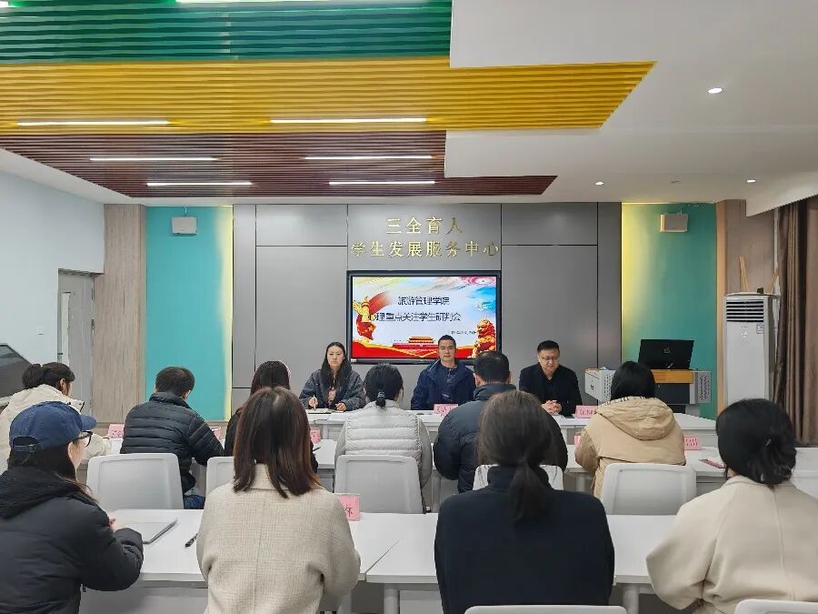 会上,学院二级心理辅导站负责人朱臣臣老师汇报了近期新生心理访谈工作的开展情况,并结合访谈数据与观察信息,对当前重点关注学生的心理动态进行了系统分析与研判。与会人员围绕“新生心理适应问题识别”“访谈中发现的风险因素评估”“分级干预与持续跟踪机制”等议题展开深入交流,进一步优化了针对新生的心理危机预警与干预流程,形成阶段性、可操作的工作方案。陈海彬强调,要高度重视新生心理健康教育工作,坚持“早识别、早介入、早支持”的原则,做到精准识别、及时响应、持续关怀,帮助新生平稳度过适应期。