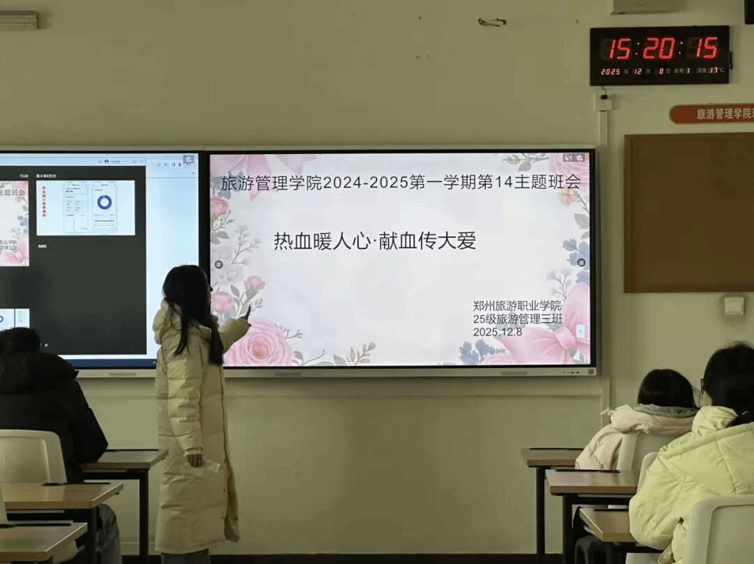 班主任分享了邓新辉16年献血185次、曹亮献血救子等暖心案例,生动诠释了无偿献血的生命价值与社会意义。让学生们深刻认识到,无偿献血不仅是救死扶伤的社会责任,更能收获健康益处与相关福利,不少同学当场表示愿意成为无偿献血的践行者,用热血传递爱心与温暖。