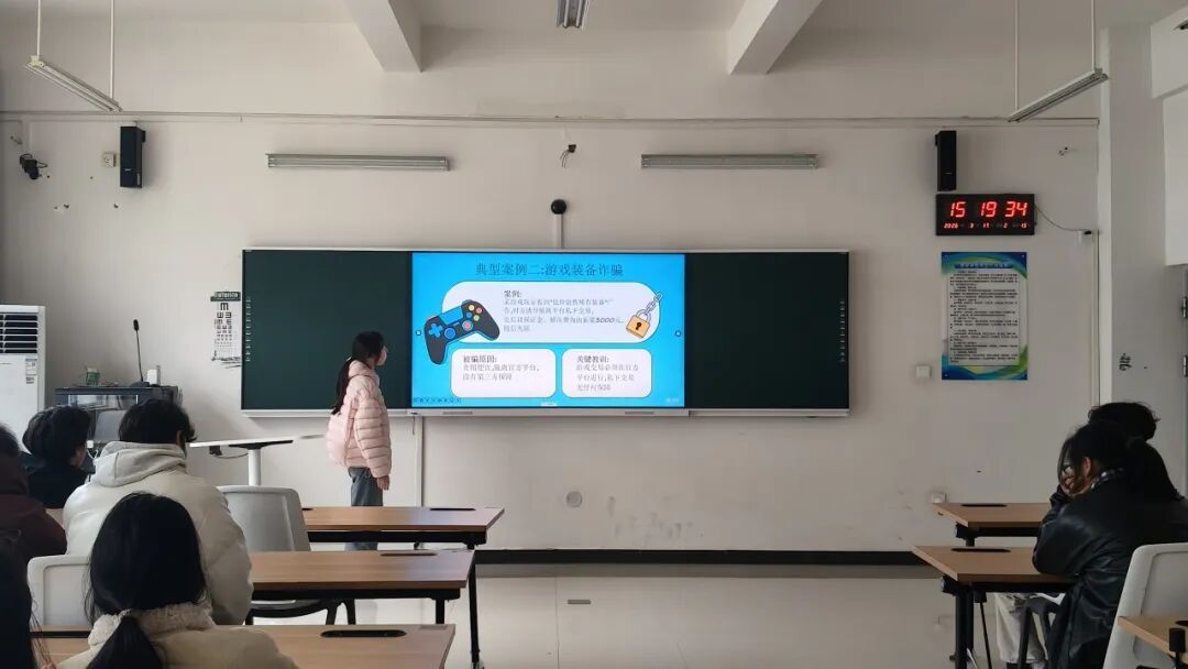 班会伊始,班主任带领全体学生学习《致广大师生的一封公开信》,组织观看《一堂反诈课》主题教育视频。结合学生群体典型案例,班主任以案释法,深入剖析刷单返利、校园贷、冒充客服等电信网络诈骗的常见手法,讲解识别与防范技巧。同时,围绕网络安全法律法规开展系统讲解,阐明违规网络行为的法律性质与安全风险,引导学生树立合法用网、安全用网的正确观念。