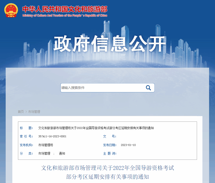 2023年5月19日9:00起,延期考区考生可登录全国导游资格考试网上报名系统查询考试结果。
