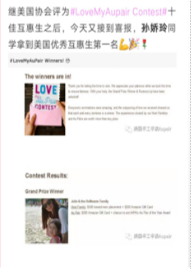 孙娇玲———2016届毕业生,毕业后去美国互惠,于2019年1月被评为美国优秀互惠生第一名。