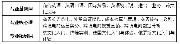 该专业在开设商务英语、国际贸易理论与实务、商务英语函电、外贸单证操作、跨境电商数据分析、成本核算与管理、跨境电商运营实务等专业类课程的同时,还开设有音乐欣赏、商务礼仪、跨文化交际等课程,既注重提高学生的专业知识水平,又重视提升学生的个人艺术素养。其中《外贸单证操作》和《商务英语》两门课程为河南省职业教育精品在线开放课程。