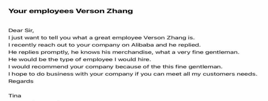 张艺凡——2022届毕业生,目前在义乌市小淘气塑胶厂实习。因表现优异,获得阿根廷客户的好评,累计为公司创下十一万三千美金的业绩。