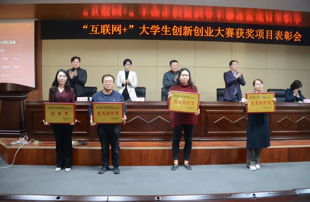 表彰会上,教务处副处长白娜宣读了表彰决定,与会领导为“‘红旅纵横’智能红色旅游网络平台”等省赛、校赛获奖项目以及团体、组织奖进行了颁奖。