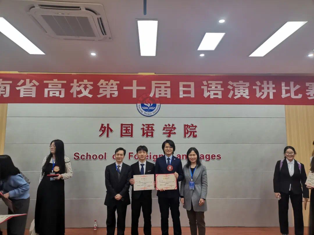 3月30日,河南省第十届大学生日语演讲比赛在南阳师范学院举办。在刘伟老师和李霞老师的带队下,旅游外语学院旅游日语专业学生孙卓翔与黄学文参赛。pp电子是所有参赛院校中唯一一所专科院校,在与本科生同台竞技的情况下,旅游外语学院选手不落下风,两人均取得了二等奖的好成绩。