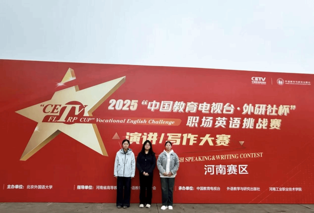 10月26日,“中国教育电视台·外研社杯”职场英语挑战赛写作大赛河南省赛在河南工业职业技术学院成功举办。在我院教师的专业指导下,参赛学子凭借扎实的语言功底与独特的表达视角脱颖而出。其中,由赵怡雪老师指导的马悦彤同学荣获特等奖,李筱涵同学荣获二等奖;由崔骋堉老师指导的王菲同学荣获一等奖,充分展现了我院学子出色的英语综合应用能力与职业素养。