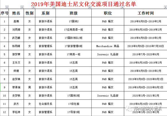 我院每年通过该项目面试人数自2015年的2人,2016年的5人,2017年的7人到2018年的11人,呈现逐年上升的良好态势。我院2019年美国迪士尼文化交流项目自2018年10月开始启动报名,经过初试,一共选拔出16人参加了2019年3月19日的北京复试。截止目前已有12人收到工作offer,面试通过率高达75%。
