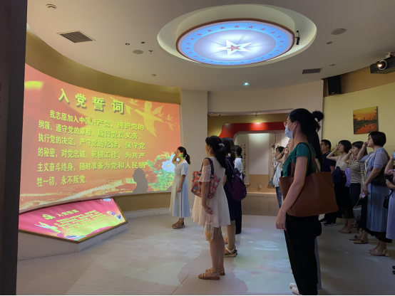 参观将近结束时,院党总支白娜书记对大家说,以铜为镜,可以正衣冠;以史为镜,可以知兴替;以人为镜,可以明得失。同志们要立足本职工作,心系学校,增强服务意识,服务师生,为学校的发展做出自己的贡献。并和全体党员一起郑重举起右拳,再一次宣读入党誓词,时刻牢记党的宗旨,不忘初心和使命。