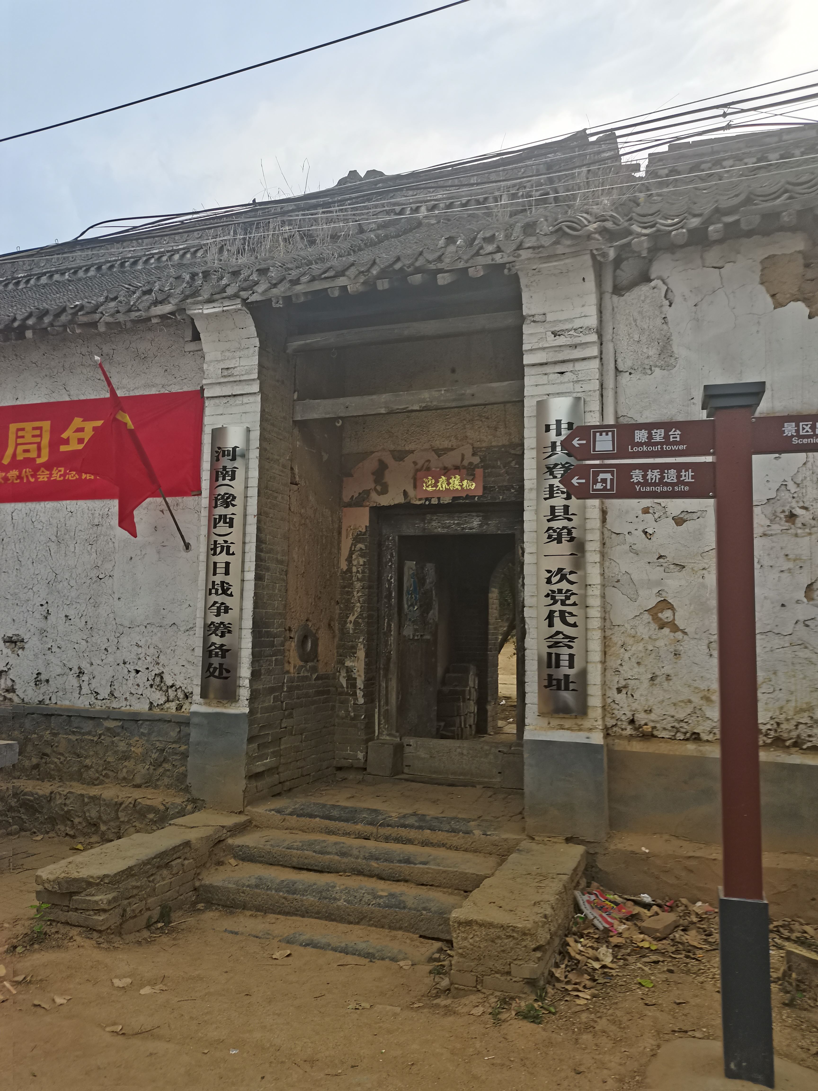 登封县第一次党代会旧址位于登封市大金店镇袁桥村,原为民国区长袁强斋家,现为顾景贵住宅,上房坐北面南,东与袁进兰宅院近邻,南为顾颜明住宅,北为袁桥村街东西路,西为袁布袋宅院。1938年,登封县地下党组织已发展到相当大的力量,在对敌斗争和组织建设、宣传活动中取得了一定的成绩。登封县根据当时的形势需要,结合工作进展情况,按照上级党委决定,将偃师、巩县、登封中心县委,改建为各县县委。2月前后,县地下党委便以读书座谈会为掩护,在这里召开了第一次代表会议。