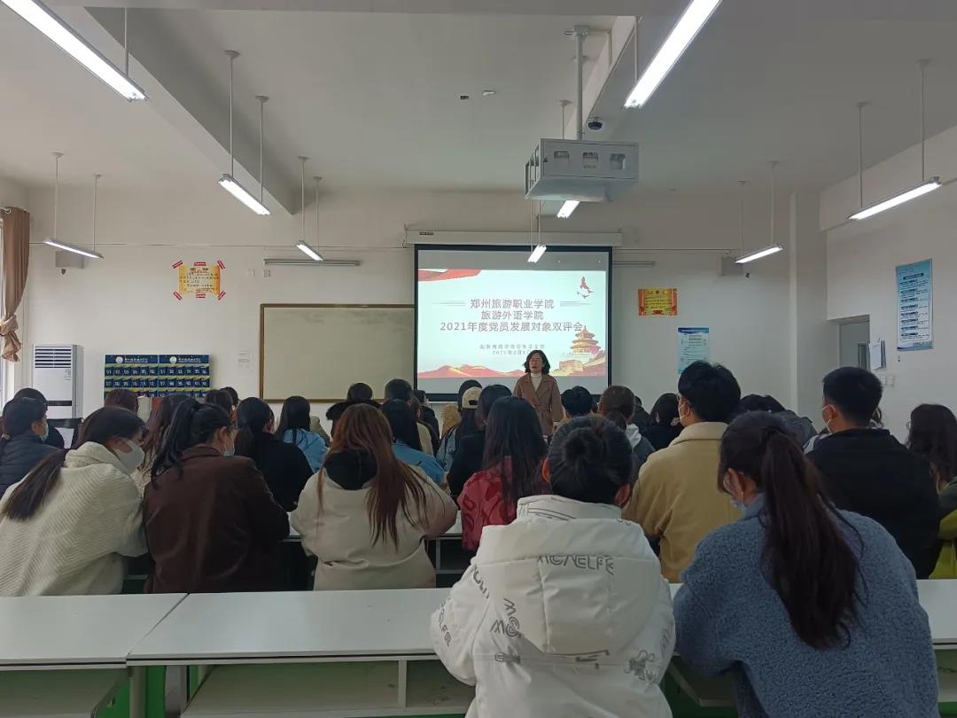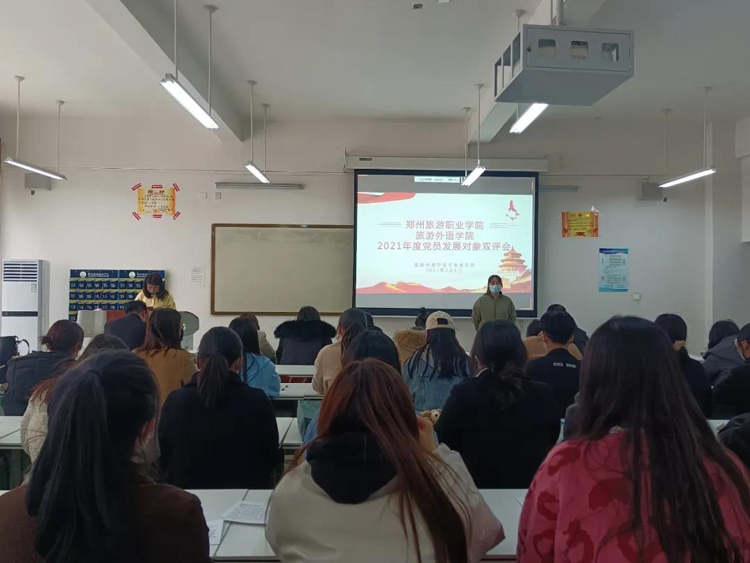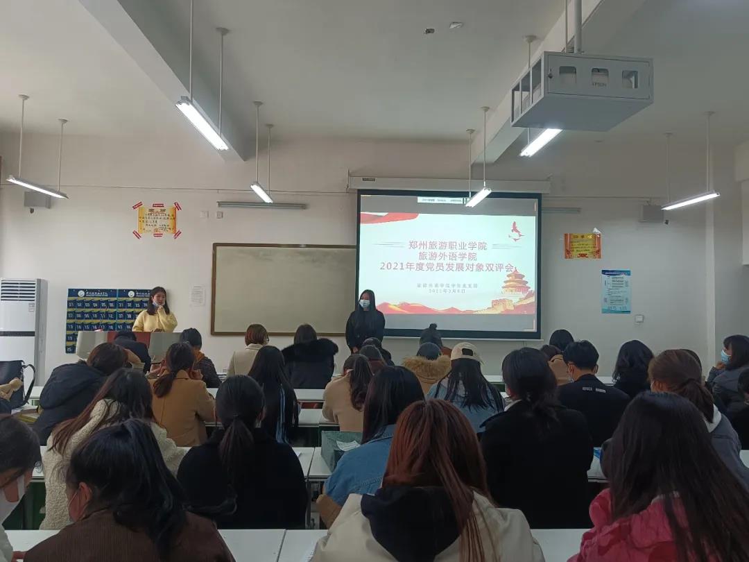 为进一步做好2021年度党员发展工作,做到按程序、有计划地发展党员,切实保证新发展党员质量,根据《中国共产党章程》和《中国共产党发展党员工作细则》有关规定,按照郑州市教育局和校党委组织部有关工作通知要求,旅游外语学院于3月8日在4B305教室举行了2021年度党员发展对象“双评会”。院党总支书记白娜、学生党支部书记刘晓丹、培养考察联系人和群众代表参加会议,对本期41名入党积极分子开展双评。会议由刘晓丹同志主持。