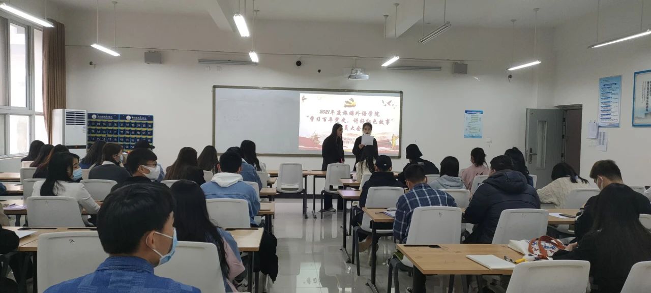 3月21日,旅游外语学院学生党支部在4B207组织开展了”学习百年党史 讲好红色故事”专题活动动员大会。参加本次大会的有学生党支部沈晋旭老师、在校入党积极分予以及本年度青马工程培训班全体学员。本次会议由团总支学生书记邱健婷同学主持。