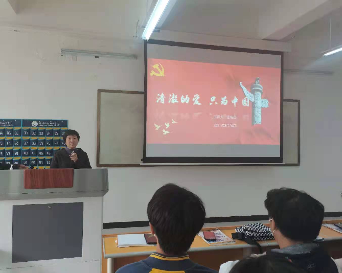 3月29日,旅游外语学院院长张贺玲在4b211为20级商务英语2班、3班上“清澈的爱,只为中国”思政课。