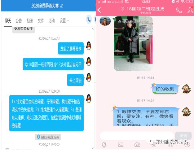 自辅导小组成立以来,以QQ群为平台,分阶段、分项目加强师生和生生沟通,坚持每日在线辅导,三个方式(导游词背诵视频、一对一在线辅导、心得分享),监督学生在英语导游词背诵基本功、诵读技巧、讲解技巧、台风气质等方面的提升,目前已完成一篇半导游词的背诵和讲解辅导,在这将近两个月以来,解老师、魏老师和学生共同努力,积极响应疫情之下国家的政策方针,不流动、不信谣,充分利用线上教学的各种优势,克服种种困难,保质保量稳步推进辅导工作的有序进行。