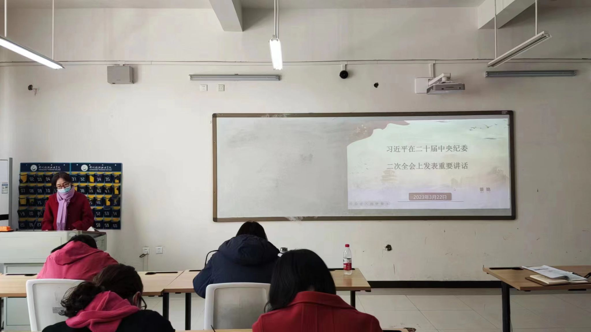 3月22日,旅游外语学院党总支组织全体教师在4B教学楼207集中学习《习近平在二十届中央纪委二次全会上发表的重要讲话》。会议由党总支书记白娜主持,总支纪检委员景艳老师领学。