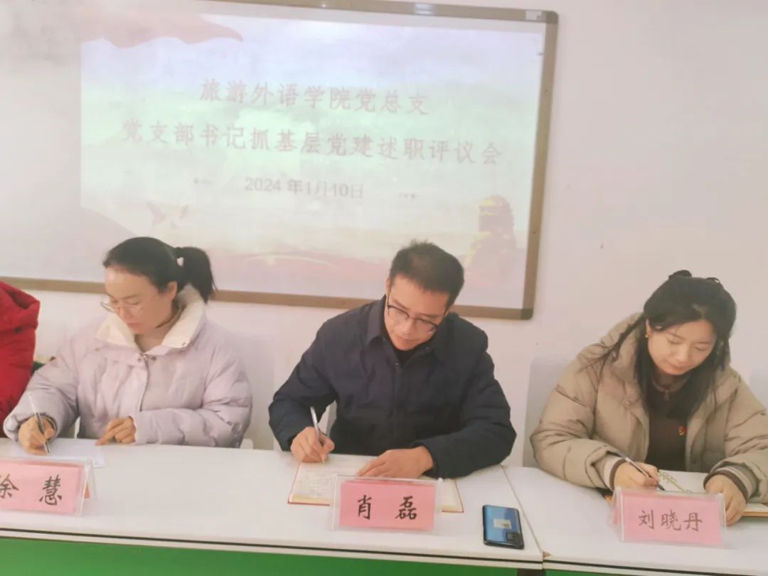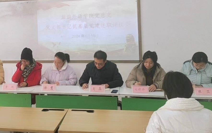 为深入学习贯彻习近平新时代中国特色社会主义思想,全面贯彻党的二十大精神,进一步落实管党治党政治责任,提高党支部书记的履职能力和责任担当,总结交流党建工作经验,旅游外语学院党总支于1月10日召开了2023年度党支部书记抓基层党建述职评议考核工作会议。会议由旅游外语学院党总支书记肖磊主持,全体党员参加了此次会议。