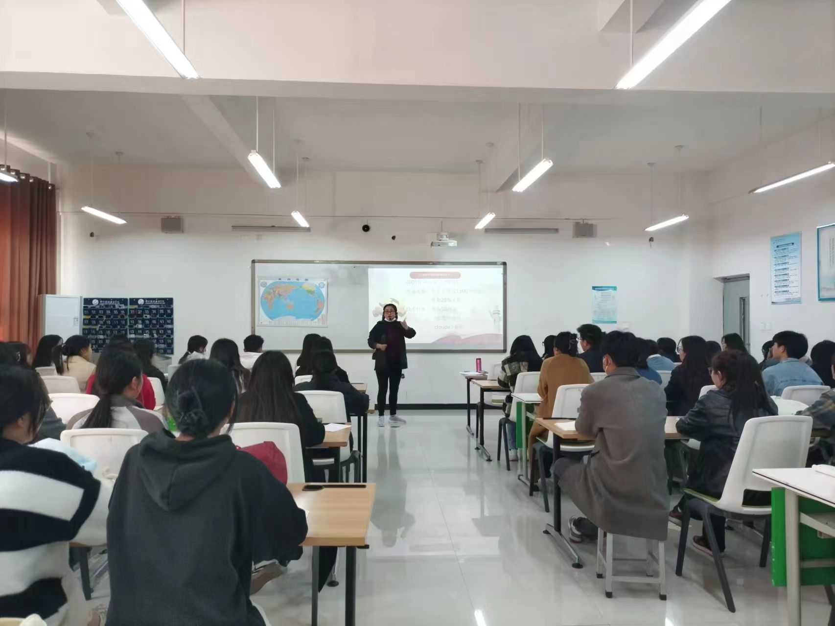 常晓霞先从“一带一路”的起源、历史上的“一带一路”、“一带一路”倡议下的世界格局变化三个方面作了交流和分享,讲述了“一带一路”倡议对构建人类命运共同体起到的重大作用。接着,常晓霞强调共建“一带一路”顺应时代潮流,阐述了 “一带一路”建设中复合型外语人才的重要性,鼓励旅游外语学院学生发挥专业特长,培养过硬的专业能力和优秀的综合素质,拥抱“一带一路”发展机遇。