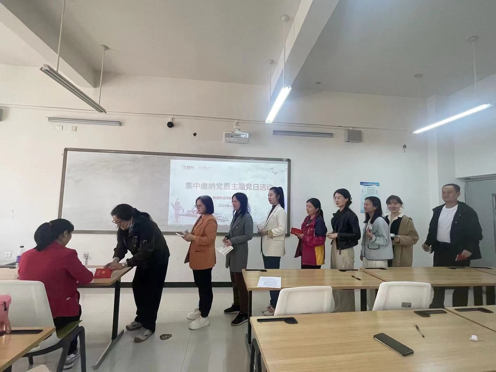 4月10日旅游外语学院教工第二党支部在清源楼207教室开展了“强党性、践初心”集中交纳党费主题党日活动。