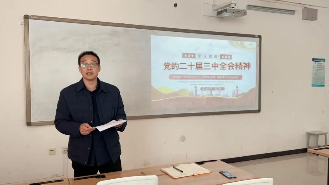 为深入学习贯彻党的二十届三中全会精神,引导学院全体干部和党员把思想和行动统一到党中央决策部署上来,旅游外语学院党总支于11月27日在清源楼207教室组织开展了全会精神学习活动,科级干部及全体党员积极参加。