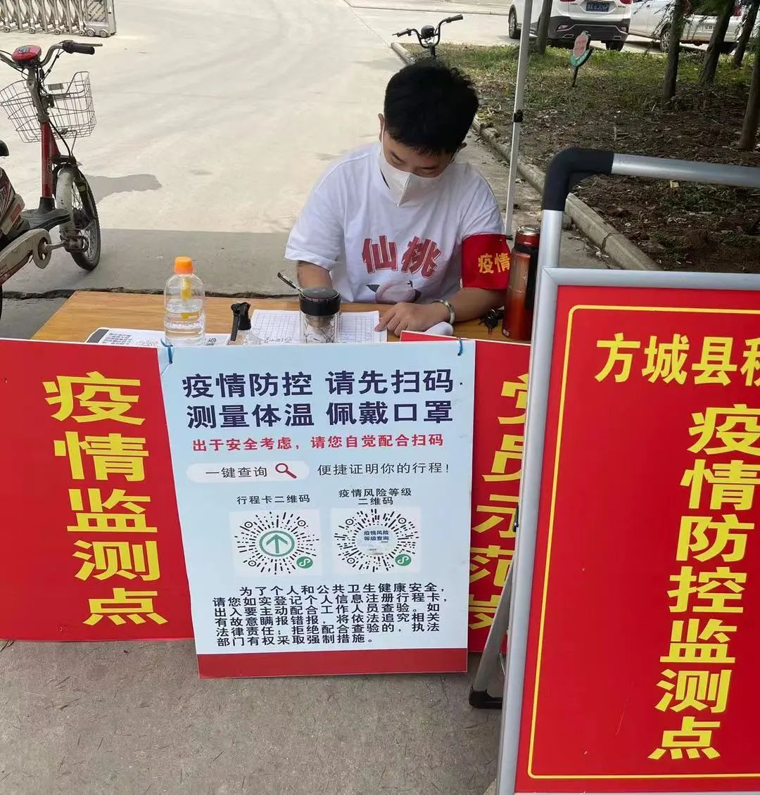 当看到疫情形势突然严峻起来,20级应用俄语1班彭莹莹在8月14日立即加入了河南省驻马店市上蔡县卧龙街道苗沟村疫情防控志愿者的队伍之中。从早上八点到下午六点,彭莹莹主要负责的任务是查看外来人员的行程码、健康码以及对外来人员进行登记、测量体温、消菌杀毒等,彭莹莹在用自己的实际行动守护着家乡人民的安全。