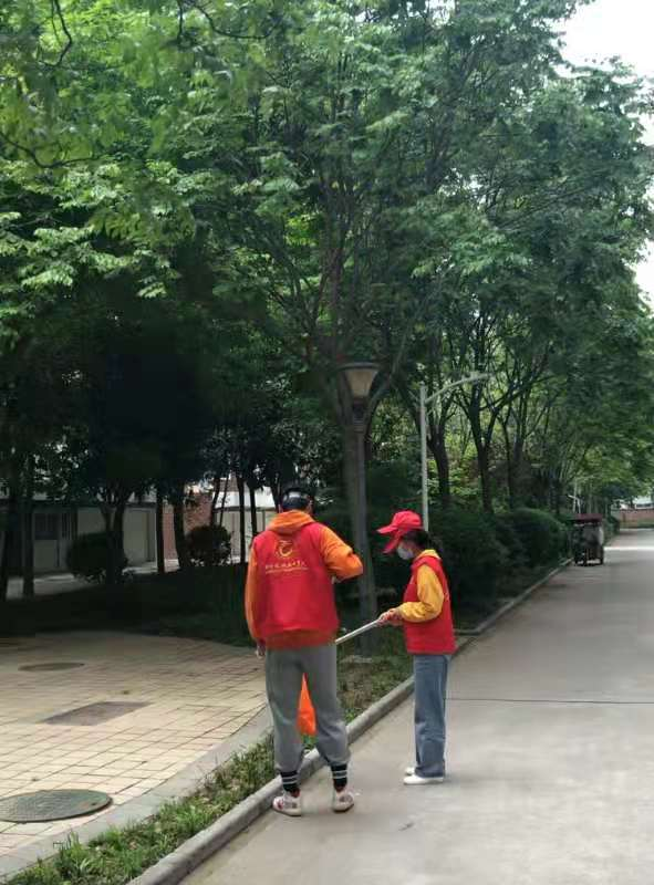 4月24日下午两点20级旅游日语2班团支部在郑州市中牟县的宁馨苑小区积极的开展了志愿活动服务社区,参与社区管理协助小区干部。